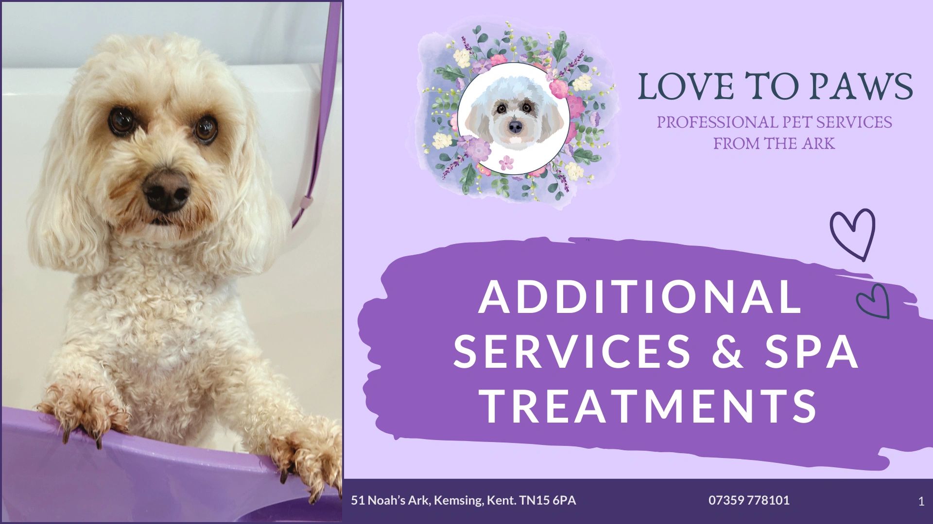 Every dog deserves to look and feel their best, so why not add a spa package to your dog’s next groom and let them leave Love to Paws feeling pampered, refreshed, and fabulous?